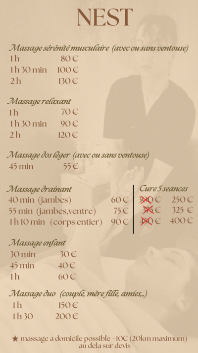Nous vous offrons une prestation de qualité avec des praticiens bien-être qualifiés ,attentifs à vos besoins. Que se soit dans le confort de votre domicile ou au sein d'un hébergement hôtelier chaque moment est pensé pour vous offrir une parenthèse de détente.
